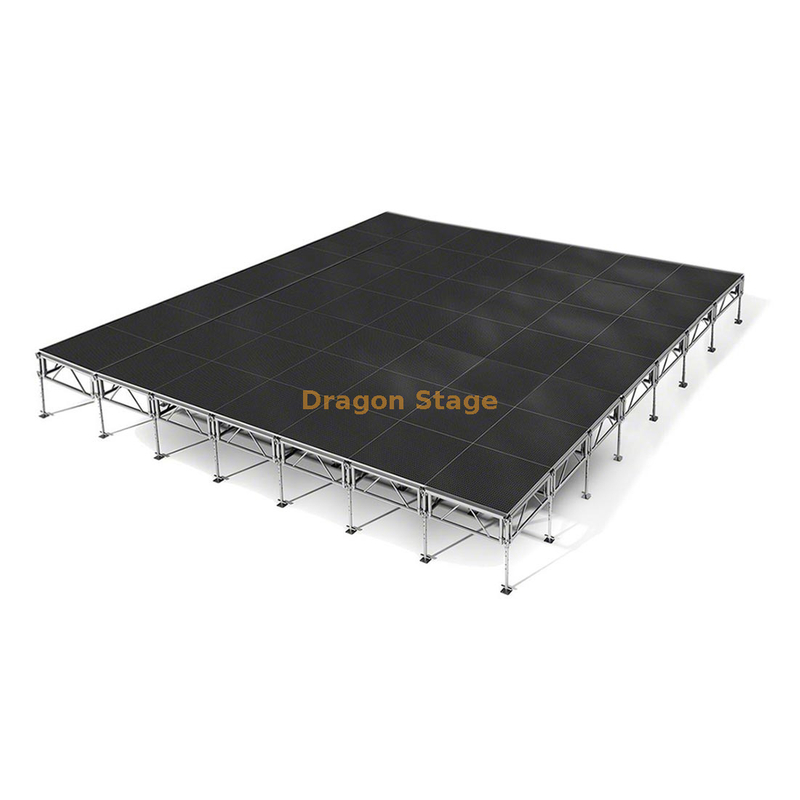 模块化设计:模块化设计可以根据需要灵活调整舞台尺寸、形状和高度。它还可以添加各种配件和组件,例如坡道、楼梯、护栏和踢脚板,以增强功能和美观性。