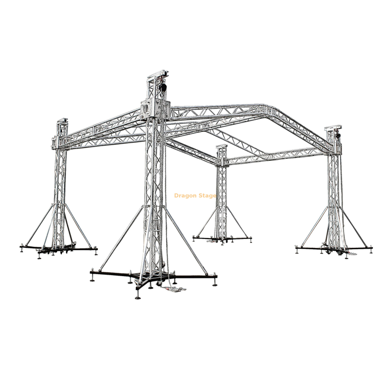 为了确保完整和专业的表演区域,该桁架设计用于与我们的模块化铝制舞台平台无缝集成。这些平台具有 18 毫米防滑表面和高承载能力,提供了与高架弧形屋顶的高质量相匹配的安全基础(来源: https: //www.dragontruss.com/Aluminum-Stage-Platform-pd463987768.html )。