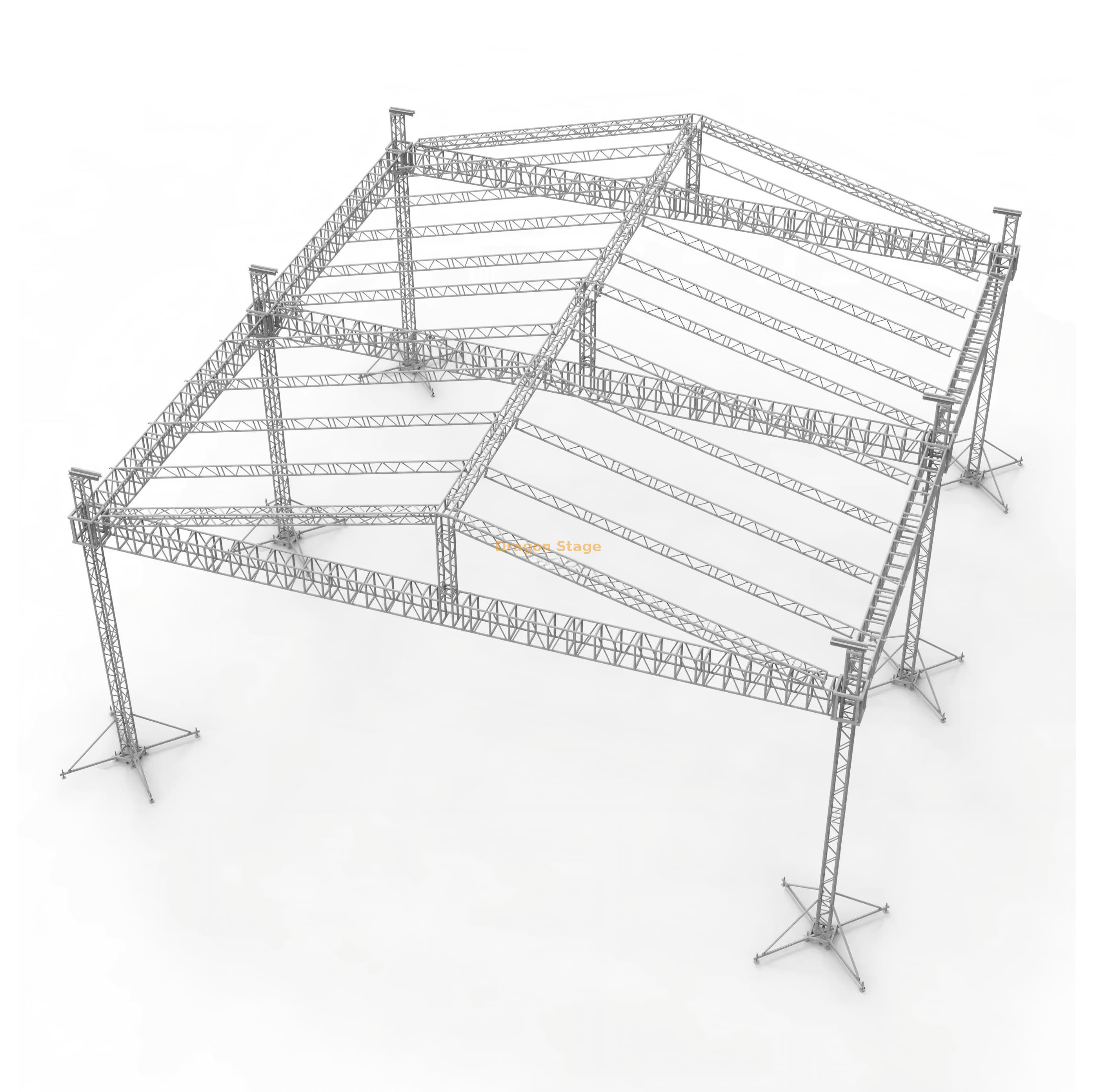 Dragon Stage 铝制大型音乐会活动桁架 专为满足大型户外制作的极端需求而设计,包括大型音乐会、大型音频节和高出席率教堂活动。该系统拥有令人印象深刻的占地面积 18m x 12m 和 10m 高,由坚固的 6 柱地面支撑 结构支撑。它采用重型 CS500x600 主桁架,确保在 18 米宽的跨度上实现广泛的照明、视频和音频索具的最大负载能力。