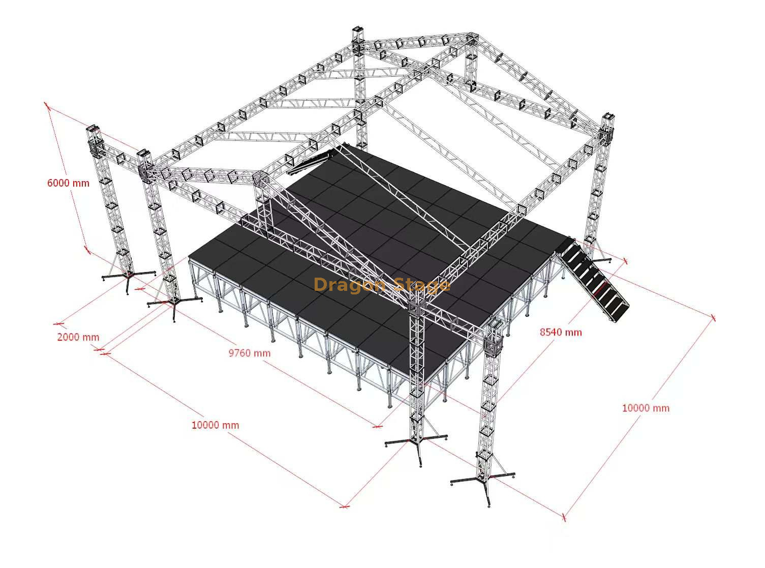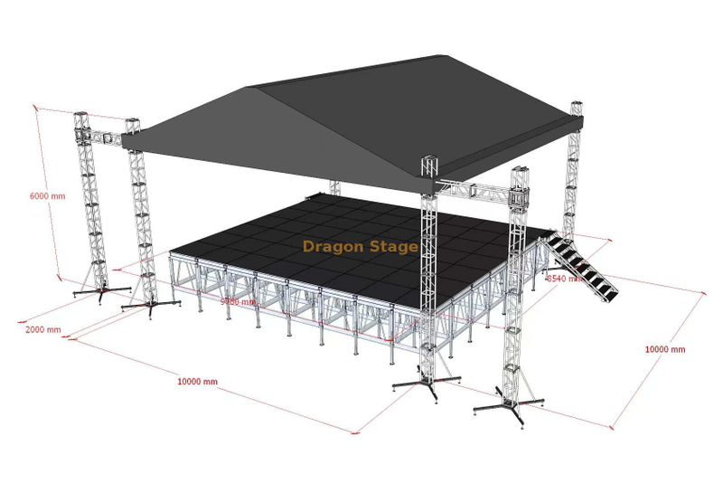 这款 专业 10m x 10m 双斜屋顶螺栓桁架系统 是一种高性能结构解决方案,专为美观和承载能力都至关重要的精英活动环境而设计。该系统垂直高度为6米,提供100平方米的综合视听表演区域。