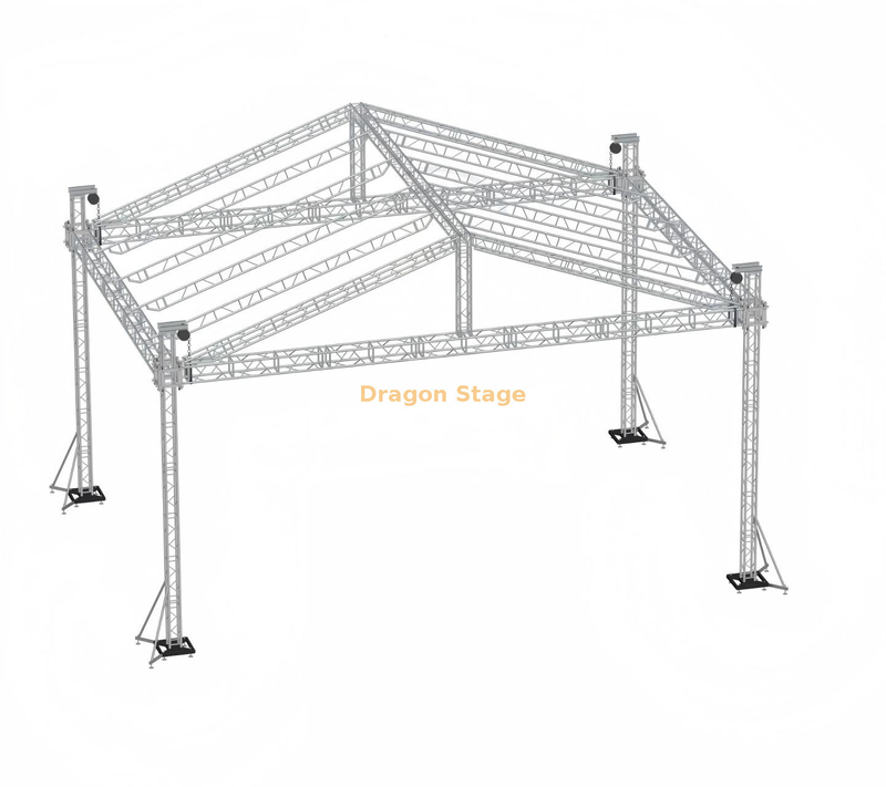 带顶户外活动桁架长12m,深8m,高5m。该结构旨在为户外活动(例如体育、活动和聚会)提供有顶棚的空间。带有屋顶设计的桁架可以提供免受自然因素影响的保护,同时仍然允许露天环境。