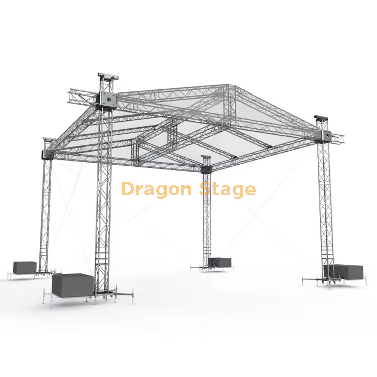 使用这款专业的铝合金舞台屋顶桁架系统提升您的户外表演。该系统专为大规模生产而设计,长10m、深9m、高7m,为任何表演提供广阔、安全的空间。