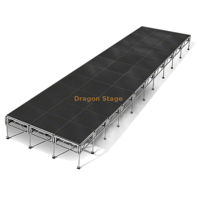该平台的主要优点之一是易于组装和拆卸。模块化设计可以快速设置和分解,节省时间和精力。此功能对于需要频繁更改场地或布局的活动特别有利。该舞台可以轻松运输和重新配置以适应不同的空间,使其成为活动策划者的实用选择。