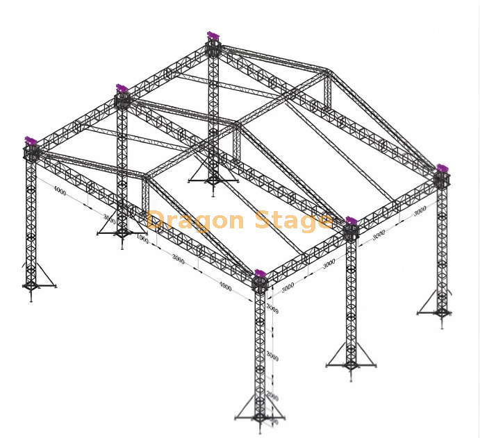 加固的 6 柱支撑: 包含 六个重型垂直塔 可以更有效地分散屋顶的重量,从而显着提高重型头顶照明、音频线阵列和 LED 屏幕的安全裕度。
