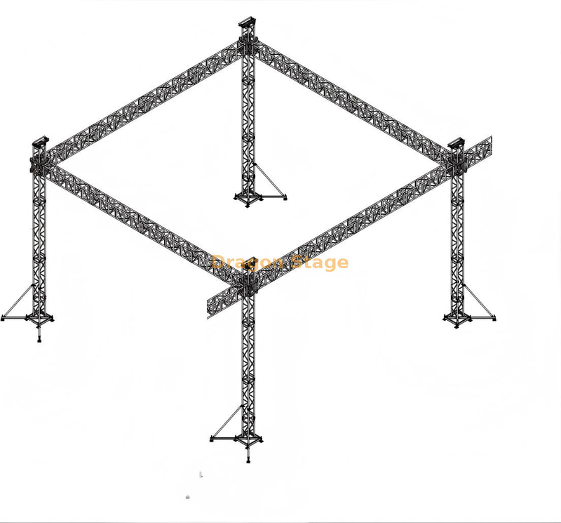 扬声器桁架系统的宽度为 9 米,同样重要,因为它决定了系统的稳定性和承载能力。更宽的桁架系统可以支撑更多的重量并更均匀地分布重量,从而降低结构失效或倒塌的风险。这对于确保表演者、工作人员和观众的安全至关重要。